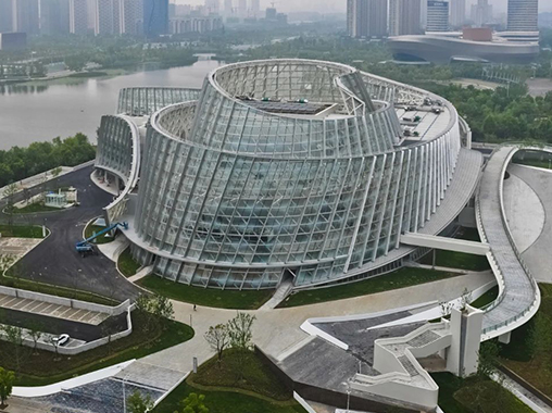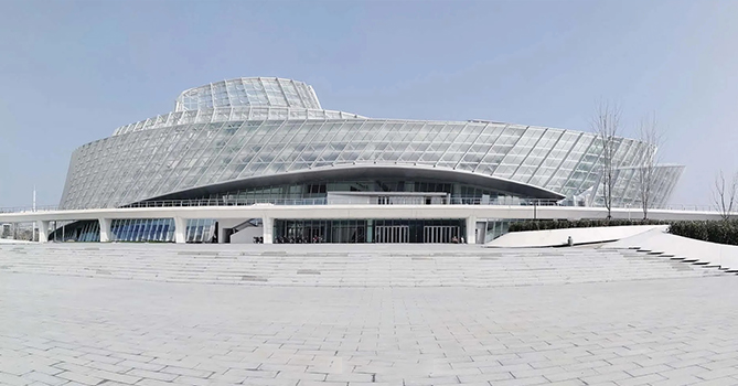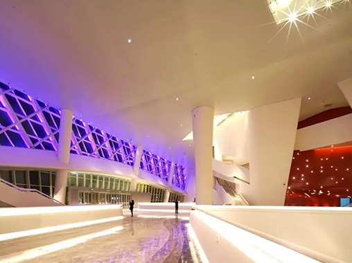 安徽阜陽大劇院,建筑立意為“七彩玫瑰”,整體為一曲面的非線性形體,外幕墻弧面的流動感及卷曲的屋面造型,異型鋼結(jié)構(gòu)從里至外逐層展開,寓意著劇院的文化藝術(shù)氣質(zhì)。